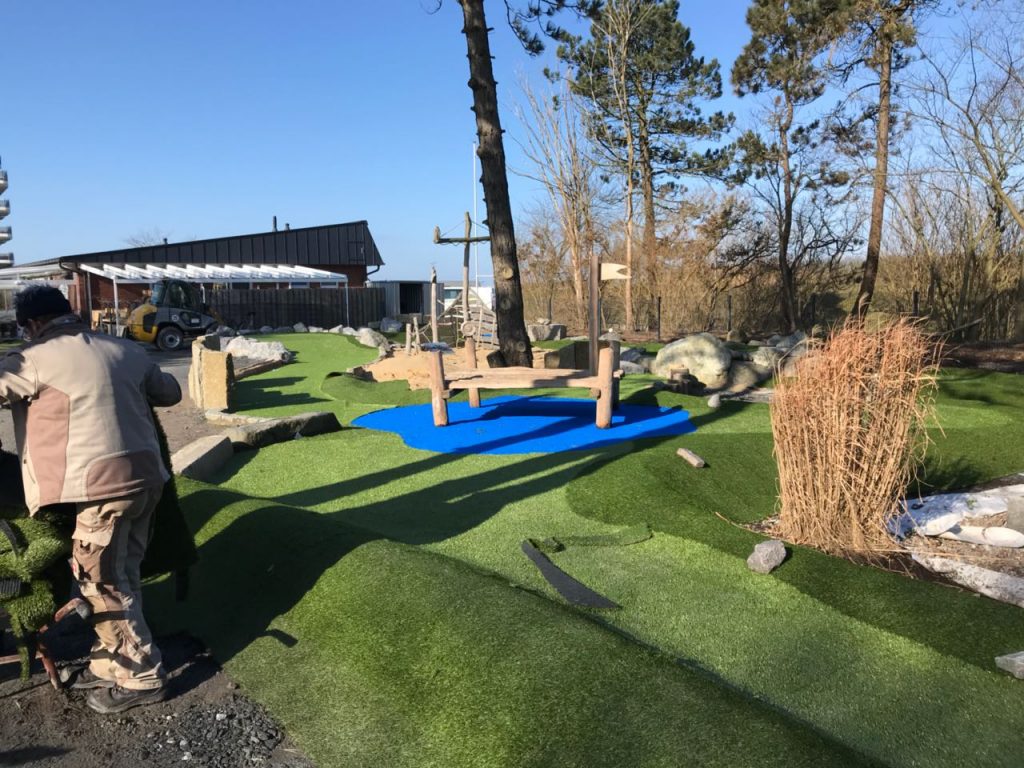Auch das geht: „Aus Alt mach Neu“ – Eine bestehende Adventure Golfanlage wird komplett „entkernt“ und mit dem Style von GolfProjekt neu angelegt. Viele Natursteinmauern und Holzelemente werden integriert, einige Bahnen, der Bachlauf und die Wege werden komplett neu aufgebaut und gestaltet. Ruhezonen werden geschaffen, ein Drainagesystem muss nachgerüstet werden? und hochwertiger, neuer Rasen wird verlegt.⛳