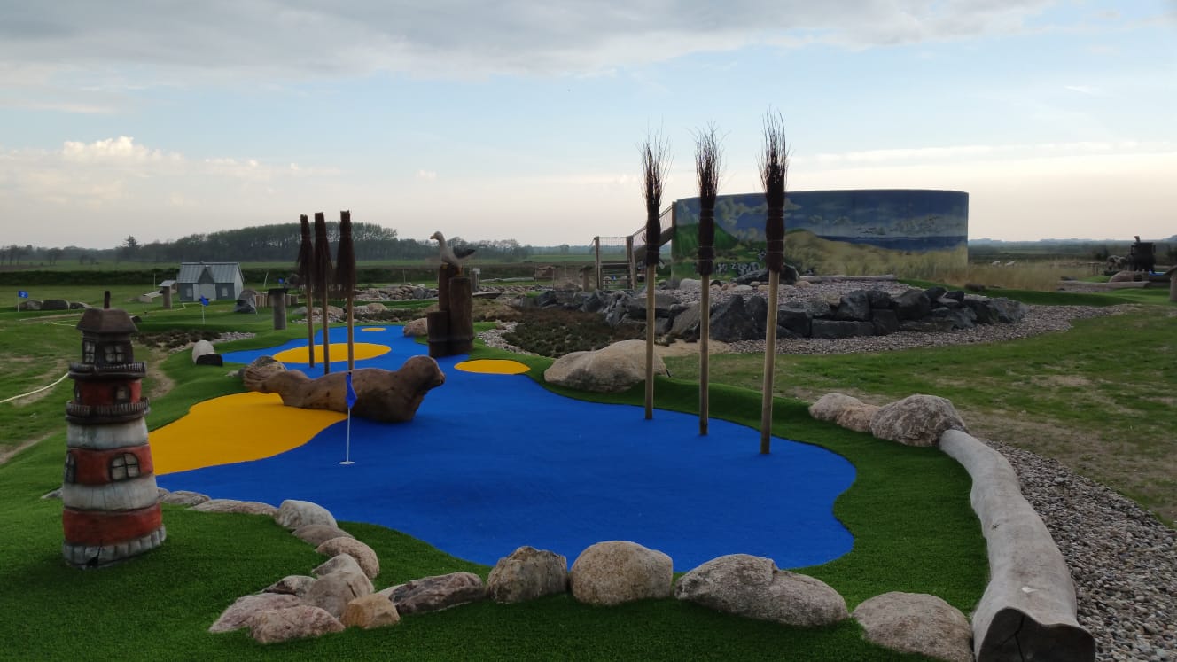 17.04.2019: Nach nur 11 Wochen Bauzeit ist die Adventure Golfanlage fertig! Sehr viele Natursteinmauern, Holzskulpturen und Robinienholz betonen die Qualität und Nachhaltigkeit auch dieser Anlage. Inseltypische Pflanzungen (Heidekraut, Strandhafer, Seegras) runden das natürliche Gesamtbild ab und integrieren die Adventure Golfanlage harmonisch in das ländlich maritime Umfeld Insel Föhrs.