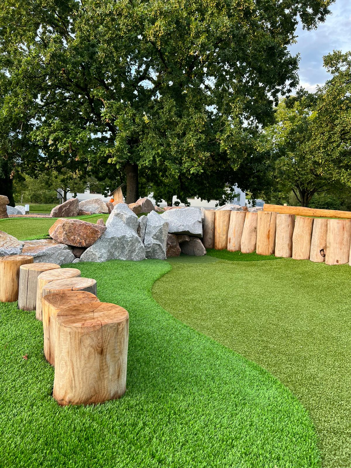Mit architektonischen, gestalterischen Elementen, landschaftlichen Höhensprüngen, einem Wasserlauf mit Zisterne, Natursteinmauern, anspruchsvollen Hindernissen und Massivholz bildet die Anlage ein sportliches Wohlfühl-Terrain.
